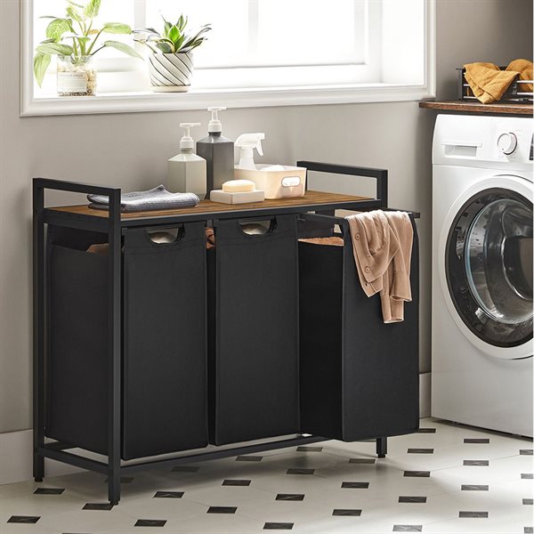 Vasagle Tvättkorg med 3 fack och hylla Svart/Grå