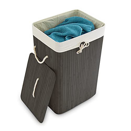 Eco Bath London, Brun, ECOB160 tvättkorg i bambu, tvättkorg för badrum och sovrum, avtagbart tvättkorg, med 100% naturlig tvättkorg i bambu (rektangulär)