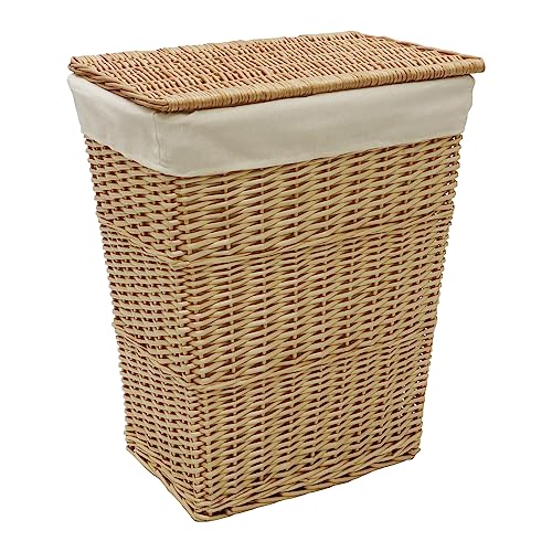 e-wicker24 Alles aus Weide Förvaringslåda, rektangulär tvättkorg, korg med hjul och tygfoder, korgförvaringslåda, låda