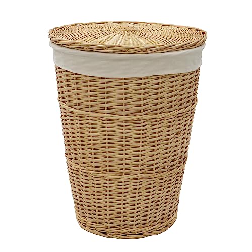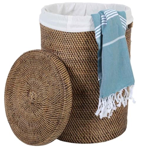 Rattan Tvättkorg, Cleo, tvättlåda, rund förvaring med lock och innerpåse, Ø 40 cm x höjd 60 cm, storlek XL LOM20023