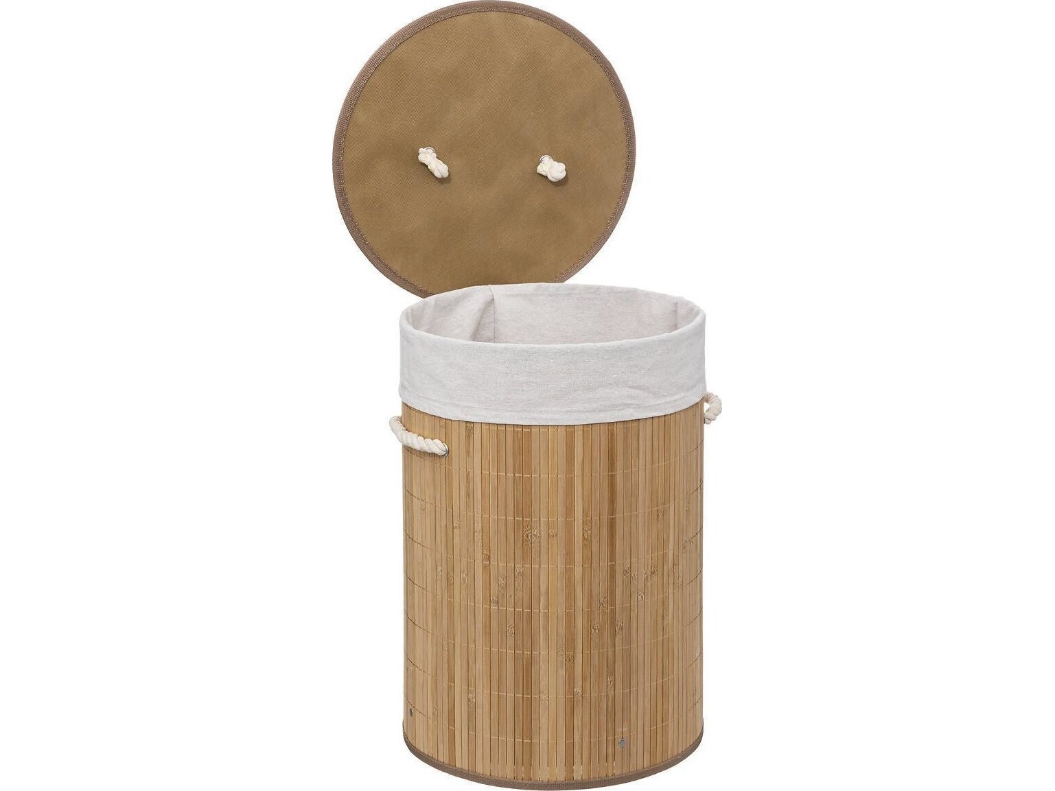 Tvättkorg 5Five Tvättkorg Bamboo, Rund Med Lock, 48 L
