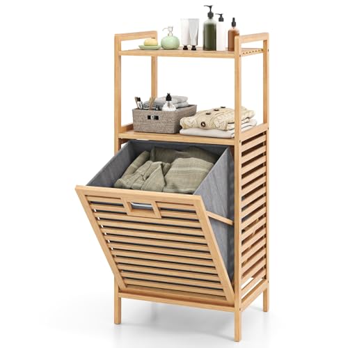 LIFEZEAL Tvättkorg, skåp med 2 hyllor bambu, tvättkorg med avtagbar tvättkorg för badrum, naturlig