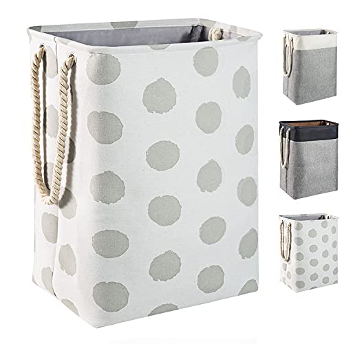BrilliantJo Stor Tvättkorg 78L, vikbar Tvättpåse med Rephandtag Förvaringsbehållare Lämplig för Sovrum Tvättstuga Badrum 60 x 42 x 31 cm Vita + Grå fläckar