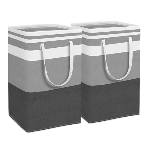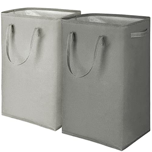 2-pack 80 l stor tvättkorg, vikbar tvättkorg, klädkorg, förvaringsväska med långa förstärkta handtag, fristående tvättkorg för badrum, sovrum