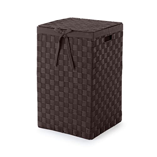 Compactor fyrkantig tvättkorg med lock, vävd tvättkorg för förvaring av kläder och linne i sovrum och badrum, avtagbart foder och bärhandtag, chokladbrun, Stan Range