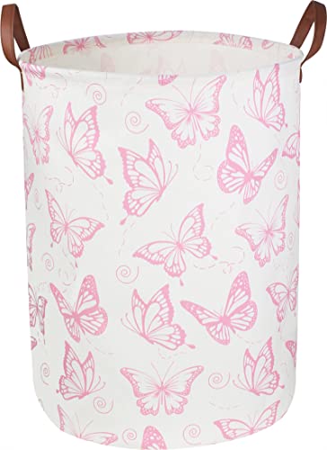 CLOCOR Rosa tvättkorg, vattentät barnkammare korg för baby flicka, hopfällbara förvaringskorgar för flickor sovrum, barnleksaker förvaringsfack, rumsdekor, presentkorg (rosa fjäril