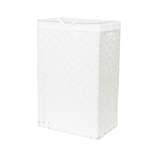 Compactor rektangel tvättkorg med lock, vävd tvättkorg för förvaring av kläder och linne i sovrum och badrum, avtagbart foder och bärhandtag, vit, Stan Range