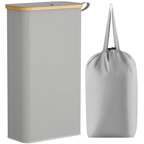 Lifewit 50 liter tunn tvättkorg med lock, smal tvättkorg med avtagbar väska och bambuhandtag, hopfällbar tunn tvättkorg för sovrum, badrum, studenthem, tvättstuga, Grå