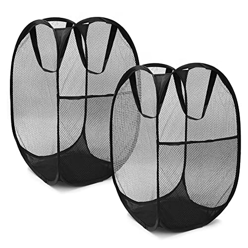 Kelamayi Tvättkorgar, 2-pack svarta tvättkorgar, popup-tvättkorg med stor kapacitet, vikbar nättvättkorg med handtag för förvaring av kläder, leksaker i sovrum, badrum