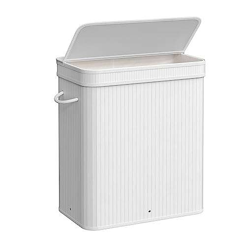 SONGMICS Tvättkorg 100 L, korg för smutstvätt, 2 sorteringsfack, bambulock, handtag, vikbar, avtagbar maskintvättbar, tvättbar väska, för tvättstuga, sovrum, grå LCB064G01