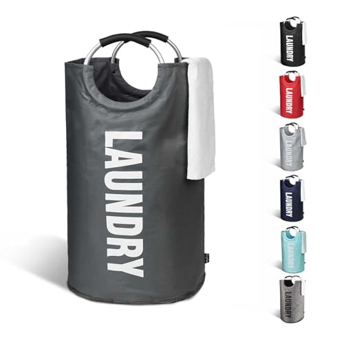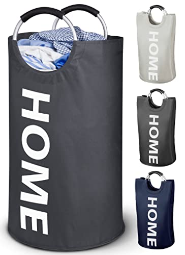 Wellenborg praktiska tvättkorg i mörkgrått tyg - Rymlig 82 liters tvättväska med handtag - Vikbar tvättpåse för utrymmesbesparing i badrum, sovrum och studentrum - Multifunktionell förvaringskorg