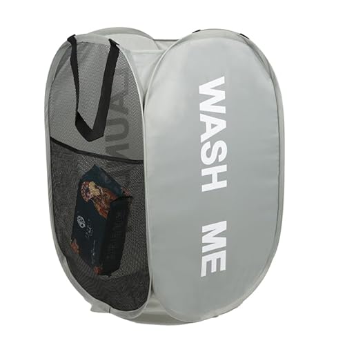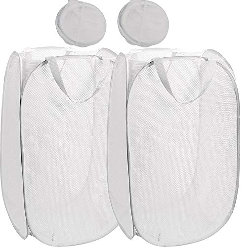 Qtopun, Hopfällbar tvättkorg i nät 2 delar, bärbar tvättkorg för sovrum, barnrum, college sovsal, resetvättkorg (vit)