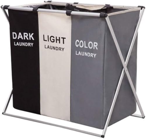 Imagine orange stor hopfällbar tvättkorg, 3 fack, väska för smutsiga kläder med handtag, för badrum, sovrum, hem (#1)