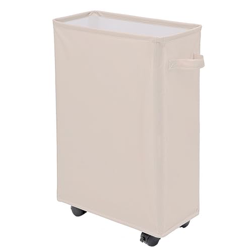 IHOMAGIC 40 l tvättkorg med hjul, vikbar tvättkorg med hjul, smal rektangulär tvättbehållare, förvaringspåse smutsig tvättkorg för badrum, sovrum, lägenhet – beige