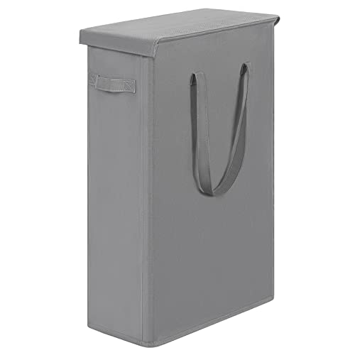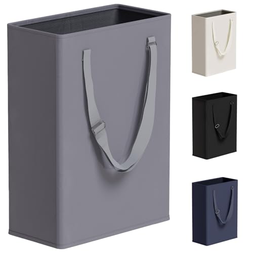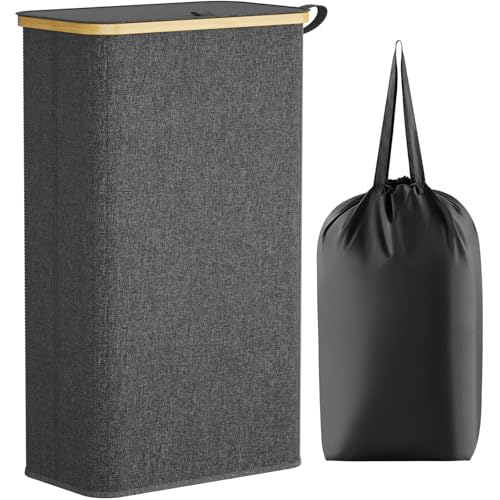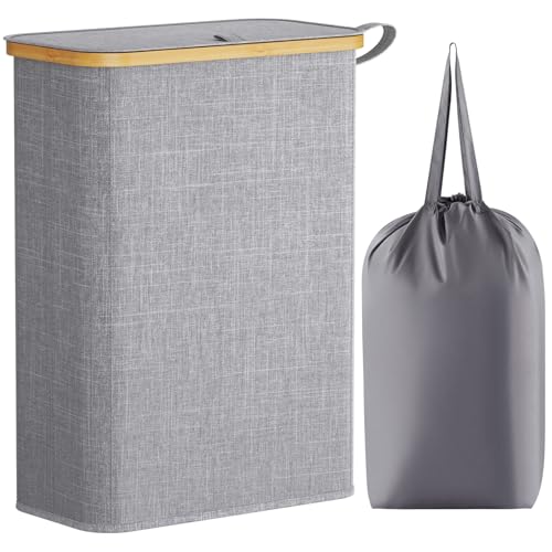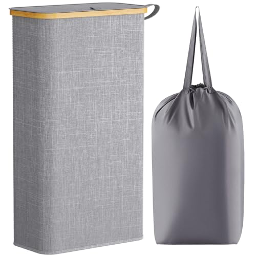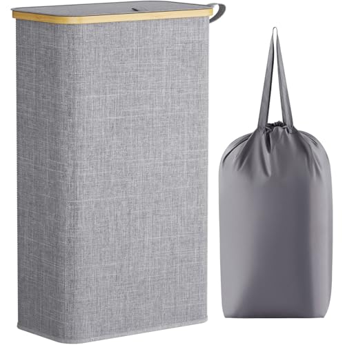 Lifewit 65 liter tunn tvättkorg med lock, smal tvättkorg med avtagbar väska och bambuhandtag, hopfällbar tunn tvättkorg för sovrum, badrum, studenthem, tvättstuga, Grå