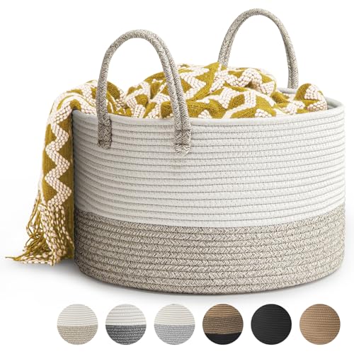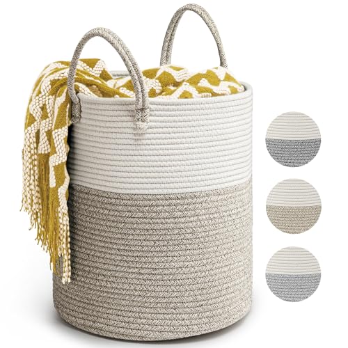 Casaphoria Stora förvaringskorgar i bomullsrep med handtag för organisering, runda vävda korgar för filtkuddar, höga vävda bomullsrep tvättkorg för sovrum badrum vardagsrum