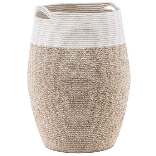 YOUDENOVA Tvättkorg stor vävd bomullsrep tvättkorg smutstvätt för tvätt eller sovrum – 25,6 höjd brun