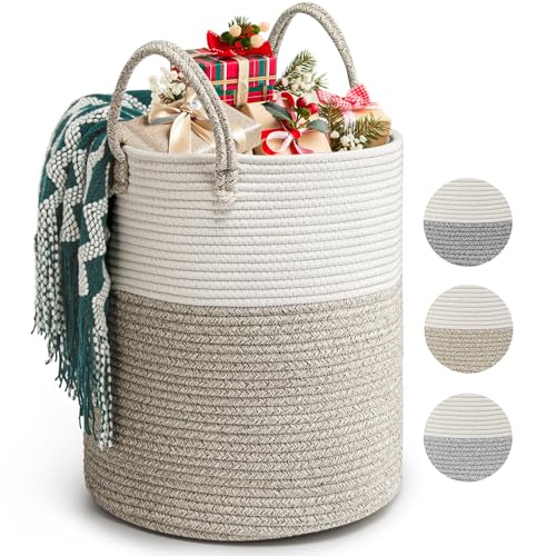 YOUDENOVA Tvättkorg stor vävd bomullsrep tvättkorg smutstvätt för tvätt eller sovrum – 25,6 höjd