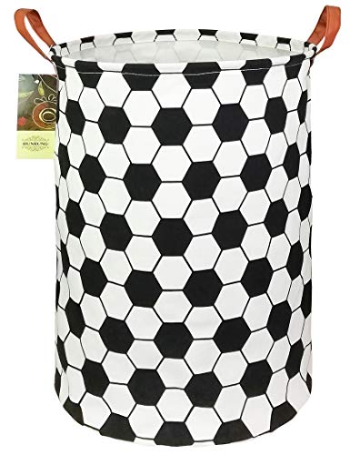 HUNRUNG Stor kanvas tyg lätt förvaringskorg leksak organiserare smutsiga kläder hopfällbar vattentät för studentrum, barns sovrum, badrum, tvättkorg (fotboll)