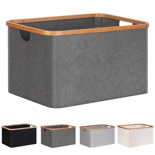 efluky Vikbar tvättkorg, 60 l, bambutyg, vikbar förvaringskorg, vikbar tvättkorg, tvättkorgar för sovrum, badrum (grå)