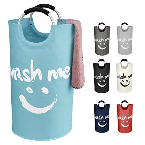 IHOMAGIC 95 l vikbar tvättkorg, tvättpåse med aluminiumhandtag - stora tvättkorgar i oxfordtyg - förvaringskorg för sovrum och badrum (blå)
