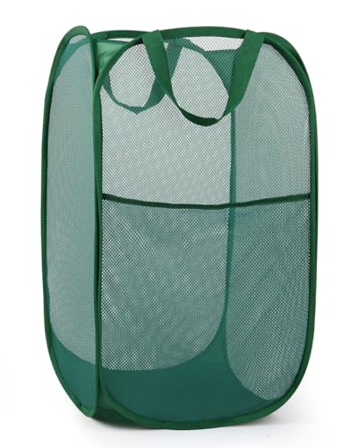Strehknewen Vertikal tvättkorg, vikbar, popup-tvättkorg, vikbar tvättkorg med handtag och sidoficka, bärbar tvättkorg för tvättstuga, sovrum och resor, 36 x 36 x 58 cm (grön)