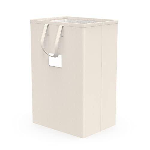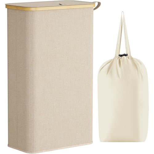 Lifewit 75 liter tunn tvättkorg med lock, smal tvättkorg med avtagbar väska och bambuhandtag, hopfällbar tunn tvättkorg för sovrum, badrum, studenthem, tvättstuga, Beige