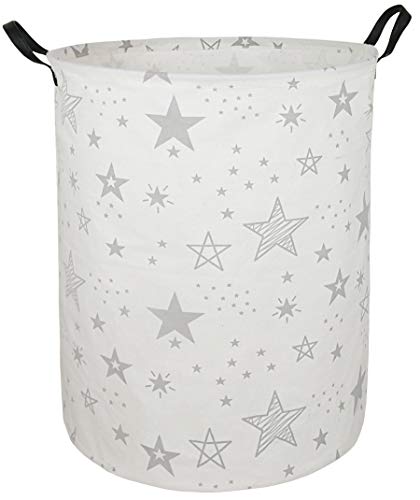 ACMUUNI 50 cm rund kanvas stor klädkorg tvättkorg med handtag, vattentät bomullsförvaring organisering perfekt för barn pojkar flickor leksaksrum, sovrum, barnkammare, hem, presentkorg (grå stjärna)