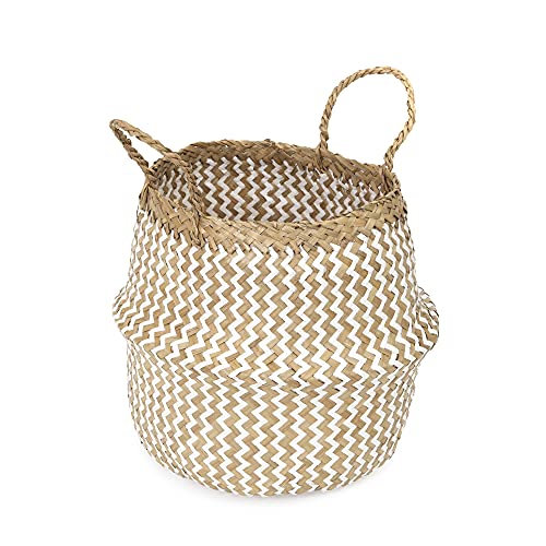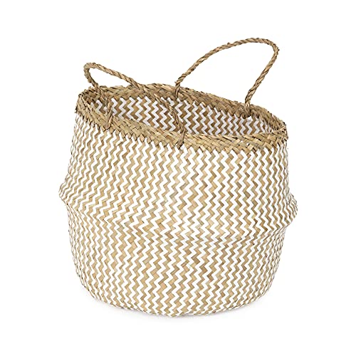 Compactor Naturlig Vävd Sjögräs Förvaringskorg, Vikbar Växtkruka, Tvättkorg och Förvaring för Leksaker för Vardagsrum, Sovrum och Badrum, Brun/Vit, Storlek Liten