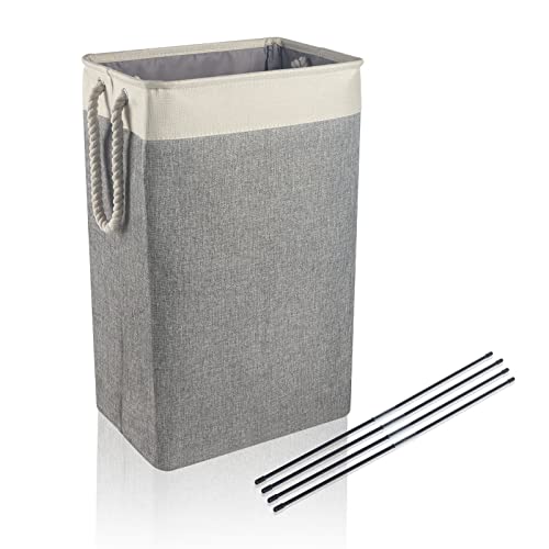 TECHMILLY smal tvättkorg med långt handtag, 61 cm smal klädkorg, 45 L små förvaringskorgar för sovrum, garderob, badrum – grå
