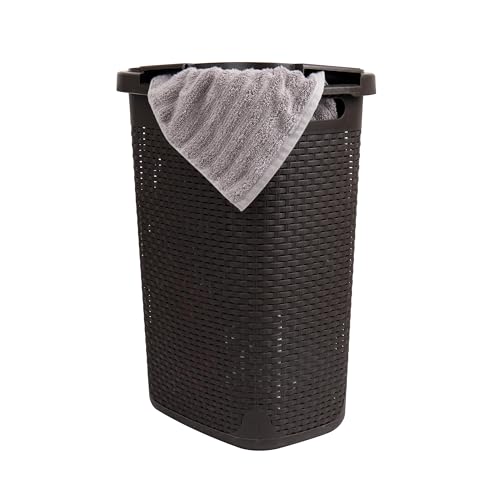 Mind Reader 60 liters tvättkorg med skurna handtag, tvätttunna, smutsiga kläder, badrum, sovrum, skåp, plast, brun
