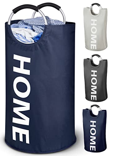 KEPLIN Hopfällbar stor tvättkorg – mörkblå, 82 L, vikbar korg, lätt att bära tvättkorgar för tvätt, klädkorg för barn sovrum, badrum, barnkammare, tvättstuga