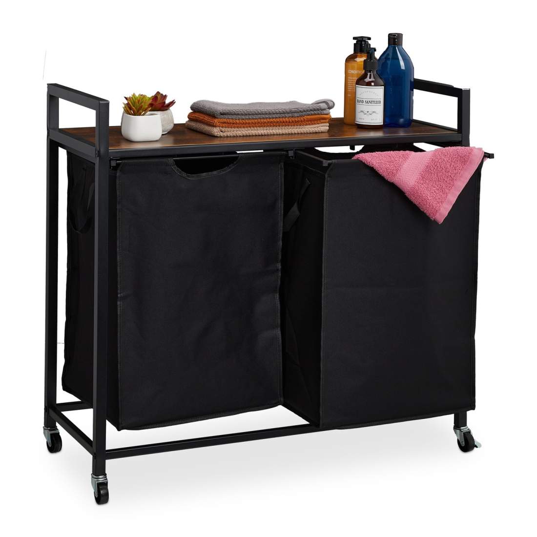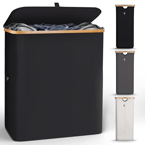HENNEZ Tvättkorg med lock 2 fack Torkkorg smal svart 141L Tvättväska - tvätt sortering antracit Tvättlåda Tvättkorg svart Tvättkorg med lock Tvättlåda mörk Tvättkorgar