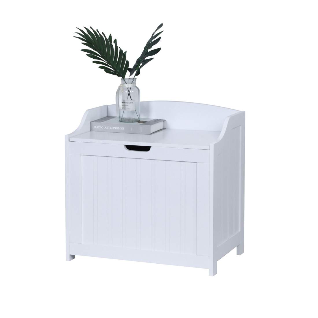 AdirHome Inbyggd tvättkorg, klädkorg med lock vägg tvättkorg, vägg tvättlåda, bra platsbesparande lösning för renoverade bad, kök - vit