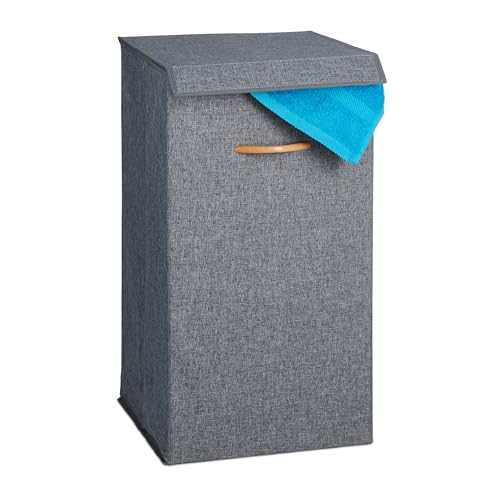 Relaxdays Tvättkorg med lock, 73 l, tvättkorg, vikbar förvaring av smuts, tvättlåda, ljusgrå/natur