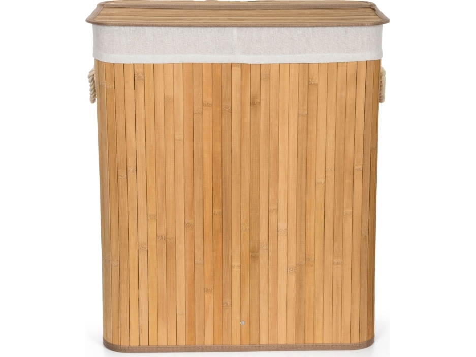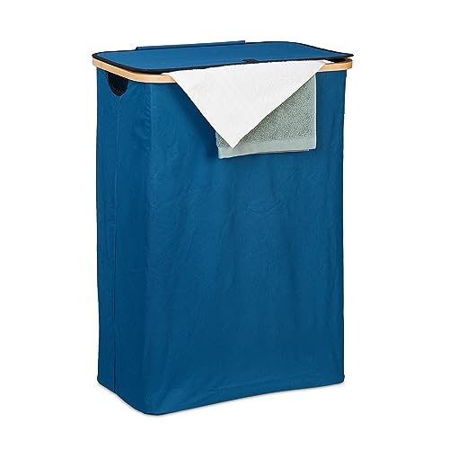 Relaxdays tvättkorg bambu med lock, rektangulär tvättkorg, 2 fack, 95 l volym, vikbar tvättlåda, naturlig