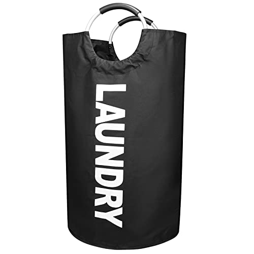 Sosayet Vikbar tvättkorg, 90 l kapacitet tvättkorg med handtag, tvättlåda av Oxfordtyg, vattentät tvättpåse tvättkorg, bärbar tvättsorterare förvaringsbehållare, flasksamlare svart