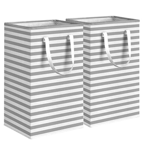 2 St 75 L Vikbar Tvättkorg - Tvättlåda Förvaringskorg Med Förstärkta Handtag, Fristående Tvättpåse för Sovrum, Badrum, Sovsal - 60 x 40 x 30 cm (Grå + Vit)