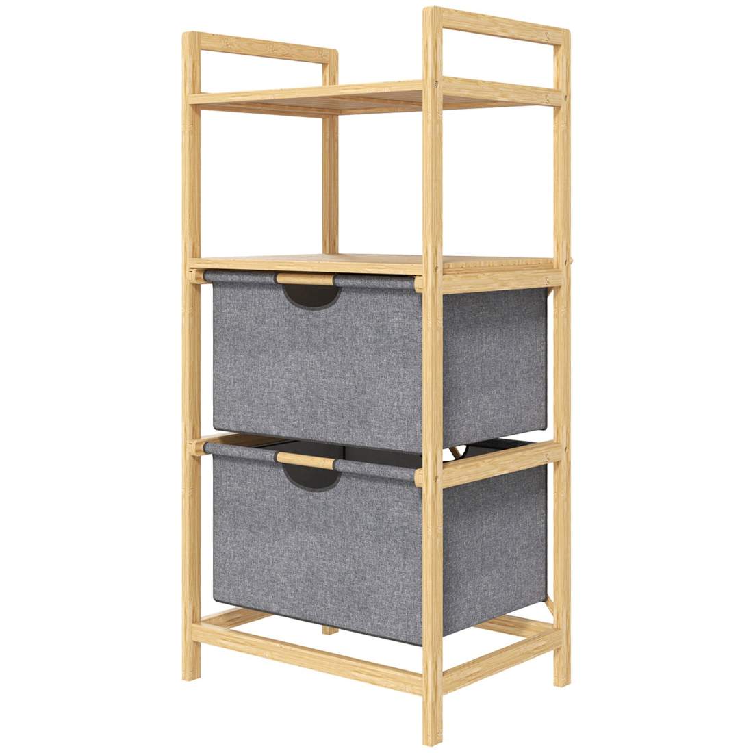 Tvättkorg 35,4 L Tvättkorg med 2 tyg Tvättkorgar Öppna hyllor Tvättlåda med handtag för badrum Bambu Natural