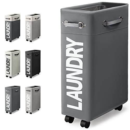 Rieeyrslza Fällbar Tvättkorg med Rullar 45L Smal Oxfordväv Fällbar Tvättkorg Tunn Tvättuppsamlare Fällbara Tvättkorgar med Hjul Tvättlåda Tvättpåsar Tvättuppsamlare(Mörkgrå o2)