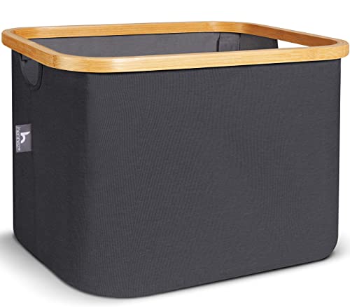 Relaxdays Linea bambu H x B x D 55 x 52,5 x 35,5 cm som rektangulär tvättlåda för förvaring av kläder, textilier som öppen tvättpuff med tygpåse naturlig design, naturlig