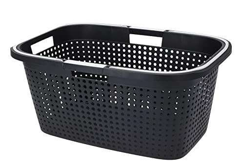 Spetebo Tvättkorg av plast 60 x 39 cm - svart - bärkorg med fällbara handtag - tvättlåda, tvättkorg, shoppingkorg