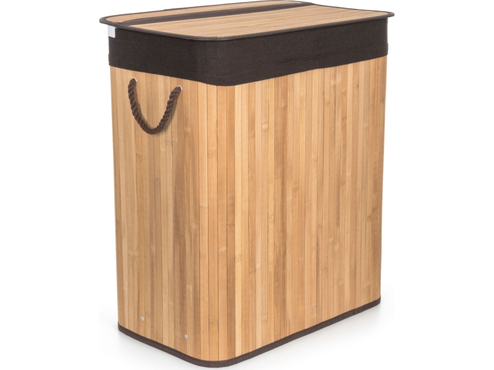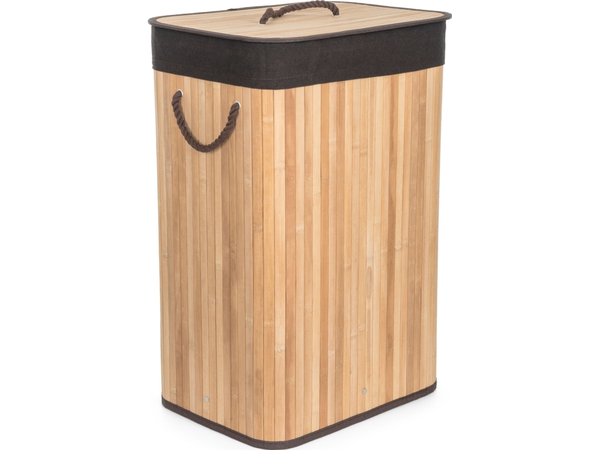 PANA®ECO Bambu tvättkorg med lock (104 l) • Tvättlåda med avtagbar tvättpåse • Vikbar tvättkorg • Badrumstvätt • 100 % bambu • Färg: Brun (52 x 32 x 63 cm)
