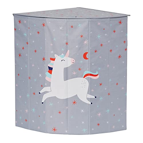 Love it Store it tvättkorg med lock – tvättlåda för barnrum av högkvalitativt tyg – extra stabil – grå med enhörning – 35 x 35 x 50 cm