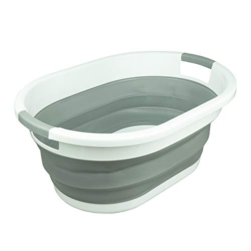 HRB tvättkorg vikbar plast vit/grå, tvättlåda liten, tvättuppsamlare med 53,5 x 38 x 23 cm yttermått, tvättstorare stor, lagringskorg