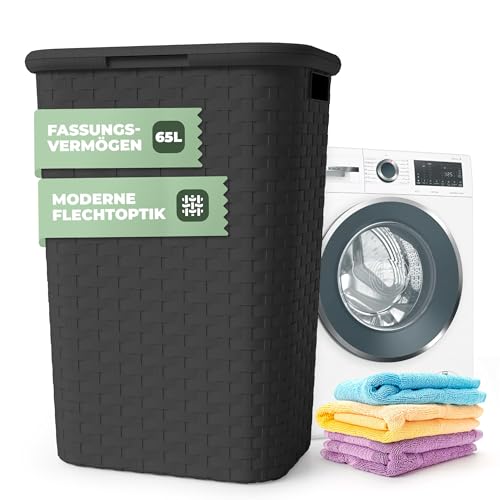 Spetebo Tvättlåda i flätad look, 65 liter - antracit - tvättkorg, tvättkorg med lock