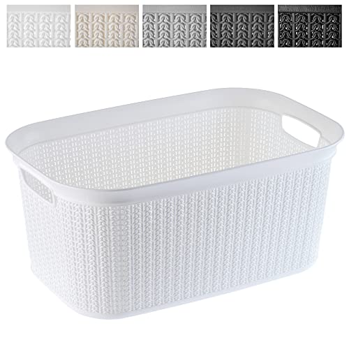 KADAX tvättkorg, multifunktionell korg, 27 l, plast, förvaringskorg, badrum, smutsiga kläder, accessoarer, leksaker, tvättlåda (vit)