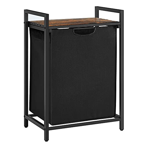 VASAGLE tvättkorg, tvättuppsamlare med hylla, tvättlåda, tvättpåse av Oxfordtyg, utdragbar, avtagbar, metallram, 65 L, 50 x 33 x 72 cm, vintage brun-svart BLH101B01