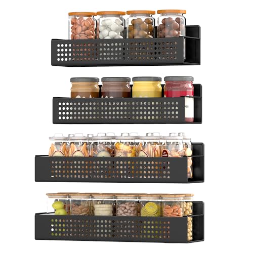 SONGMICS Magnetiska kryddställ, set om 4, 2 stora och 2 små hyllor, borrfri köksorganisatör, för kök, kylskåp, mikrovågsugn, tvättmaskin, bläcksvart KCS061B01