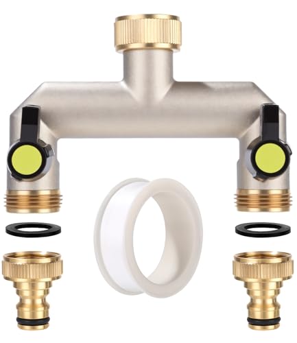 Mdlufee 3/4 tum mässing kran splitter 2-vägs, 2 snabbkontakt, slangkran splitter anslutning med 2 enkelventiler för trädgård kök kran, tvättmaskin slanganslutning